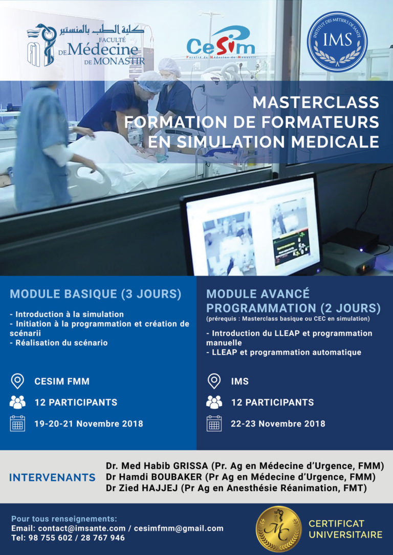 L‘Institut des Métiers de Santé organise un Masterclass "Formation de Formateurs en Simulation Médicale". POUR LE MODULE BASIQUE: INSCRIVEZ VOUS...